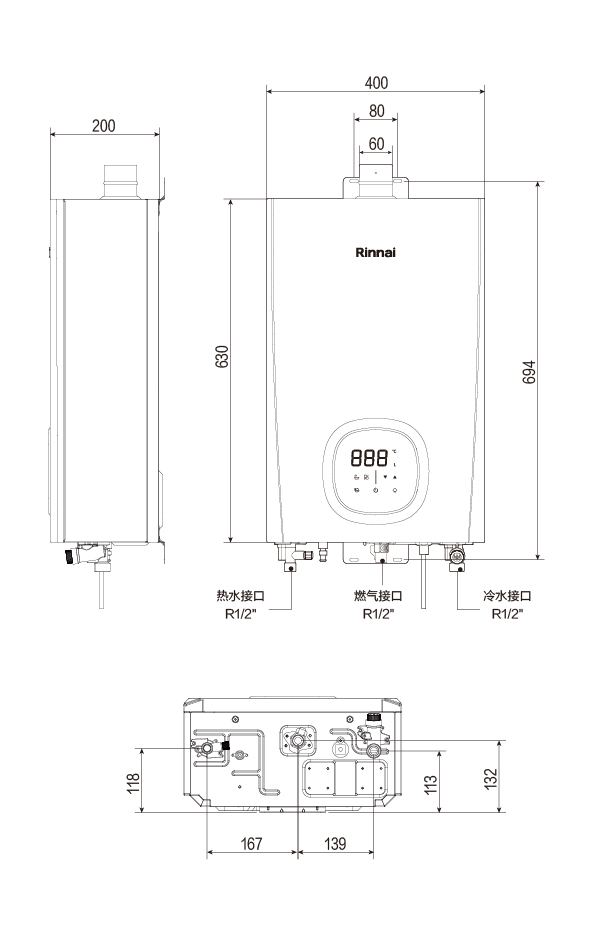 燃气接口接续口径 : R1/2″