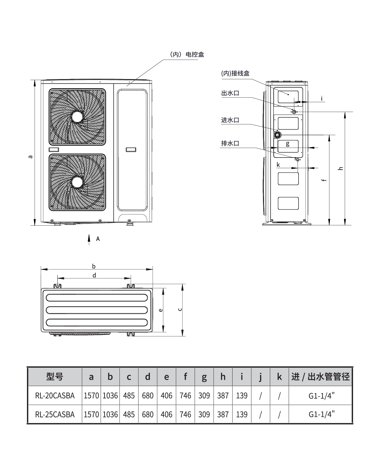机组尺寸(mm) : (W)1036×(D)406×(H)1570